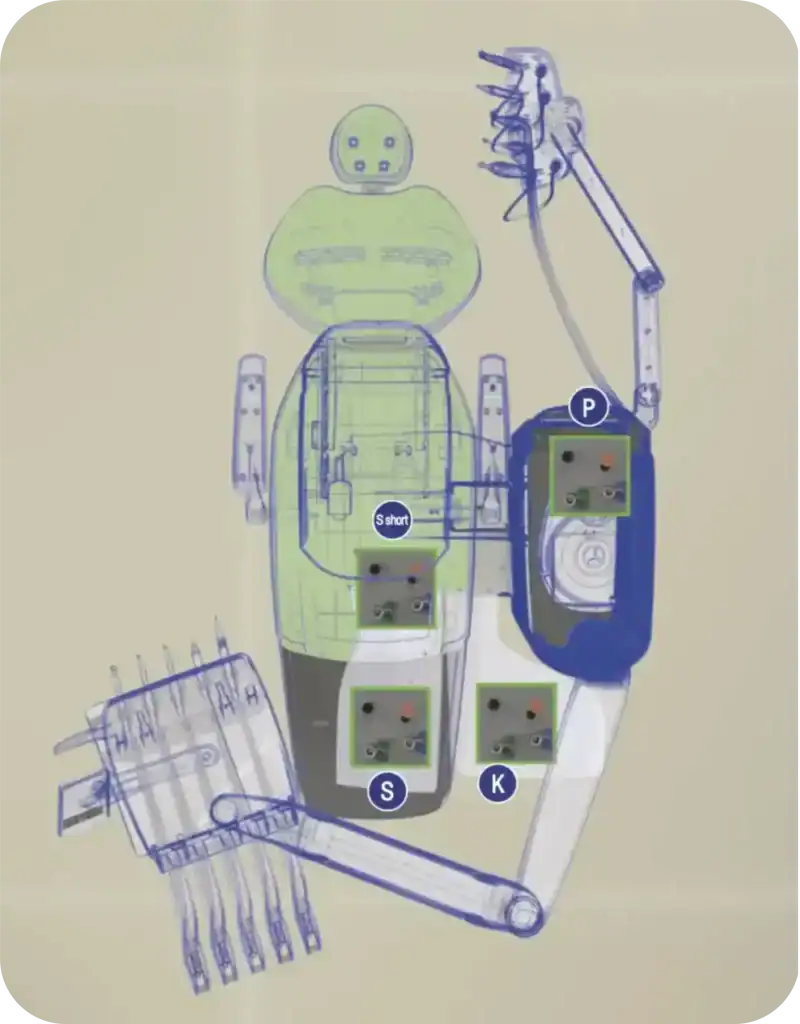 A többcsatlakozós rendszernek köszönhetően a fogorvosok megtarthatják a meglévő elrendezést, és új rendelő esetén, vagy ahol már vannak padlóösszekötők, ott helyezhetik el a fogászati egységet, ahol szeretnék. Gépcsere esetén ez a modell padlómunkák és az ezzel járó költségek nélkül telepíthető.