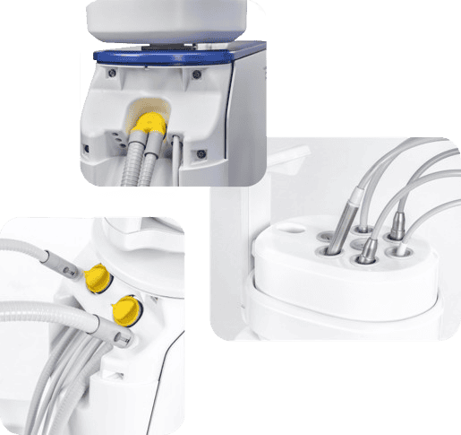 Egészítse ki fogászati kezelőegységét függőtömlős vagy lengőkaros variánssal.
