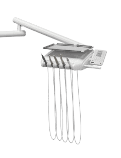 A felső konfigurációban elvezetett műszertömlőkkel ellátott fogorvosi asztal “kiakasztókarral” is felszerelhető. A műszer használata során a rendszernek köszönhetően a munka közben az orvos csupán a kézi darab súlyát kell, hogy a kezében tartsa. Így a hosszabb kezelések is fáradságmentesen elvégezhetőek.