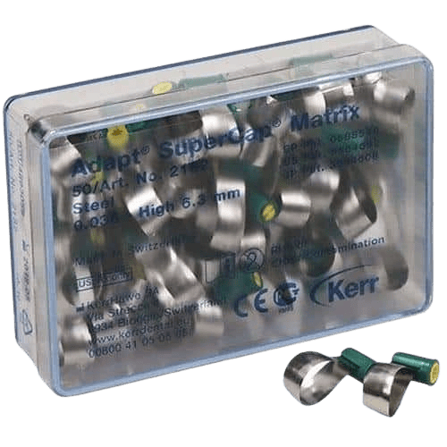 Vékony, precíziós matrica restauratív beavatkozásokhoz, a pontos kontúrok és kontaktok kialakításának támogatására. A finom vastagság segíti a stabil illeszkedést és a kontrollált adaptációt. A praktikus Supermat matricafeszítővel ,az adaptáció egyszerű , és gyorsan elvégezhető.