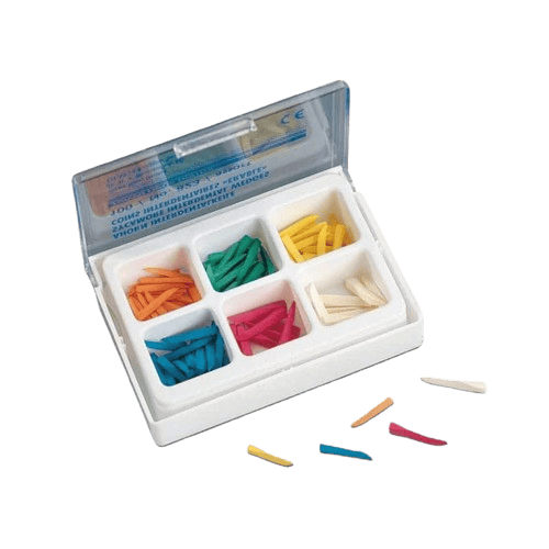 Praktikus, kisebb kiszerelésű interdentális faék válogatás, amely megbízható segítséget nyújt a restauratív beavatkozások során. A kialakítás célja a matrica stabilizálása és az optimális adaptáció elősegítése.
