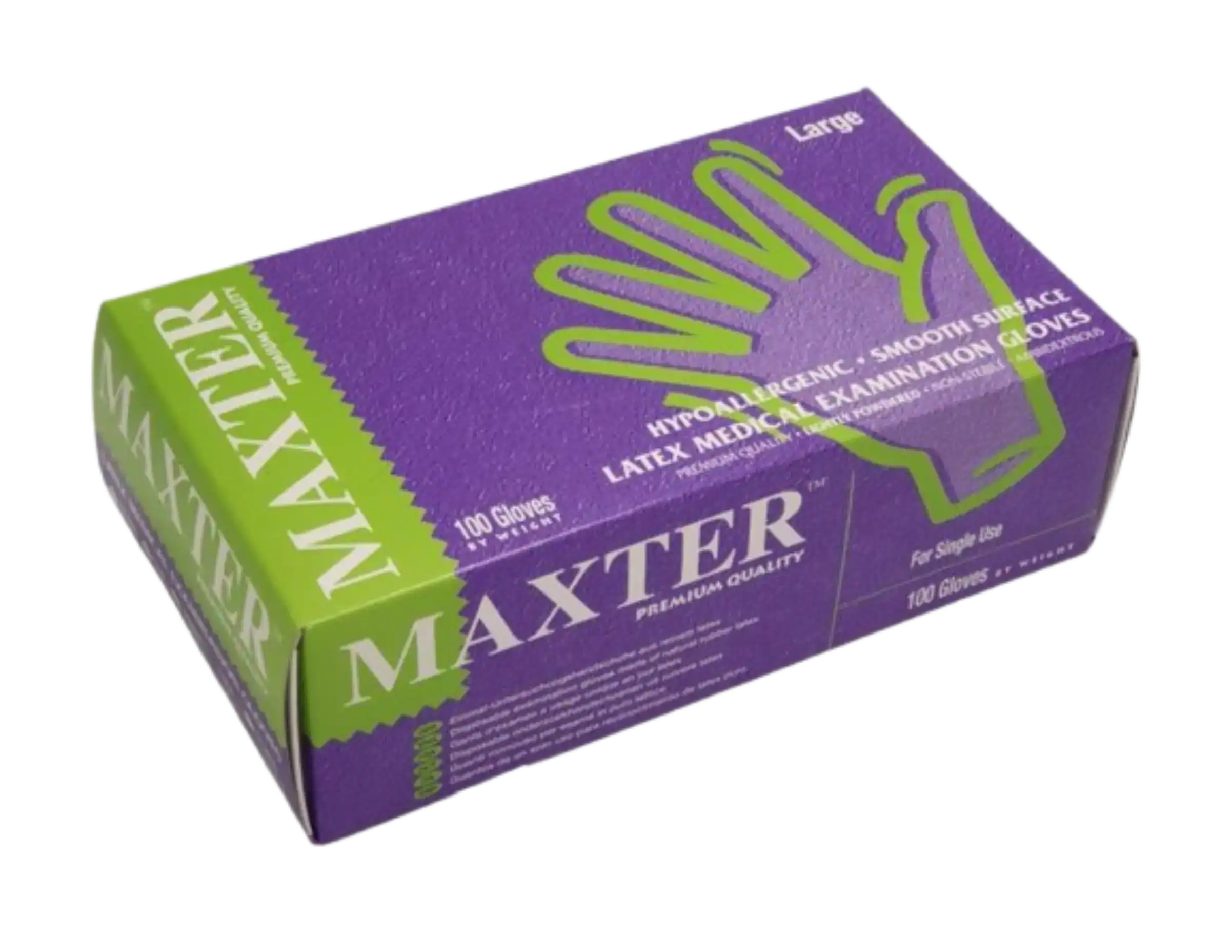 Texturált felszínű, latex alapú púderes gumikesztyű.